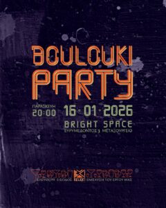 Υποδεχόμαστε το 2026 με ένα πάρτι την επόμενη Παρασκευή, 16 Ιανουαρίου στο Bright Space. Μια πόλη απ' έξω, το Μπουλούκι από μέσα!
