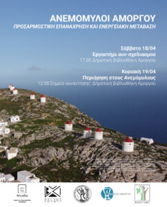 The workshop is organized by the Arcadia Center for Sustainability Transitions AMKE, in collaboration with Boulouki, the National Technical University of Athens, and the Municipality of Amorgos, as part of the project “Energy transition and community participation: Co-creation of vision for the restoration and reuse of the Amorgos windmills” which is funded by the Green Fund.
