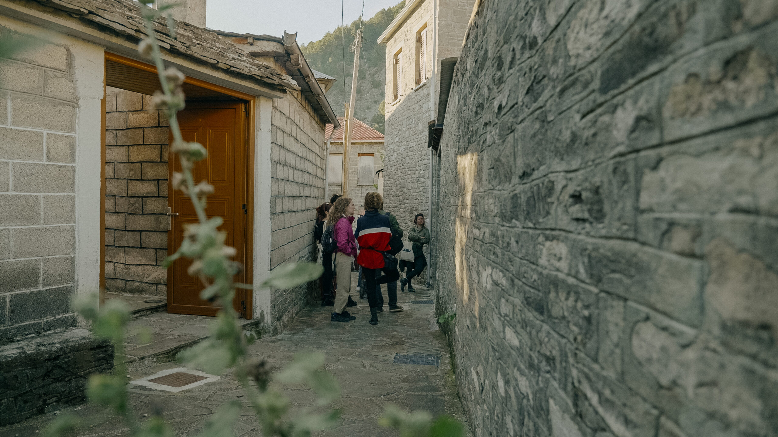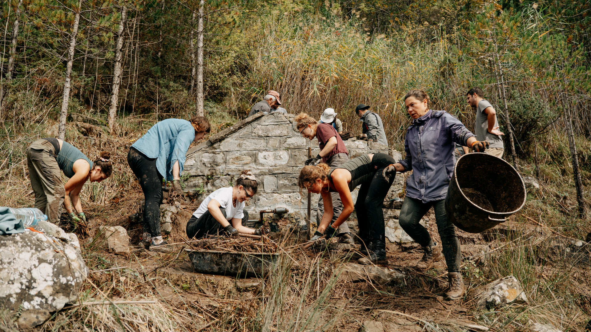 The workshops became a space of collaboration and exchange. Locals joined daily in the works and in evening lectures and discussions held in Kerasovo, Monastiri, Molista, and Ganadio, covering topics from landscape archaeology, forest ecology, butterflies and pollinators, chamois ecological corridors, the UNESCO Global Geopark Vikos-Aoos, and the Aoos River as a transboundary ecological corridor.