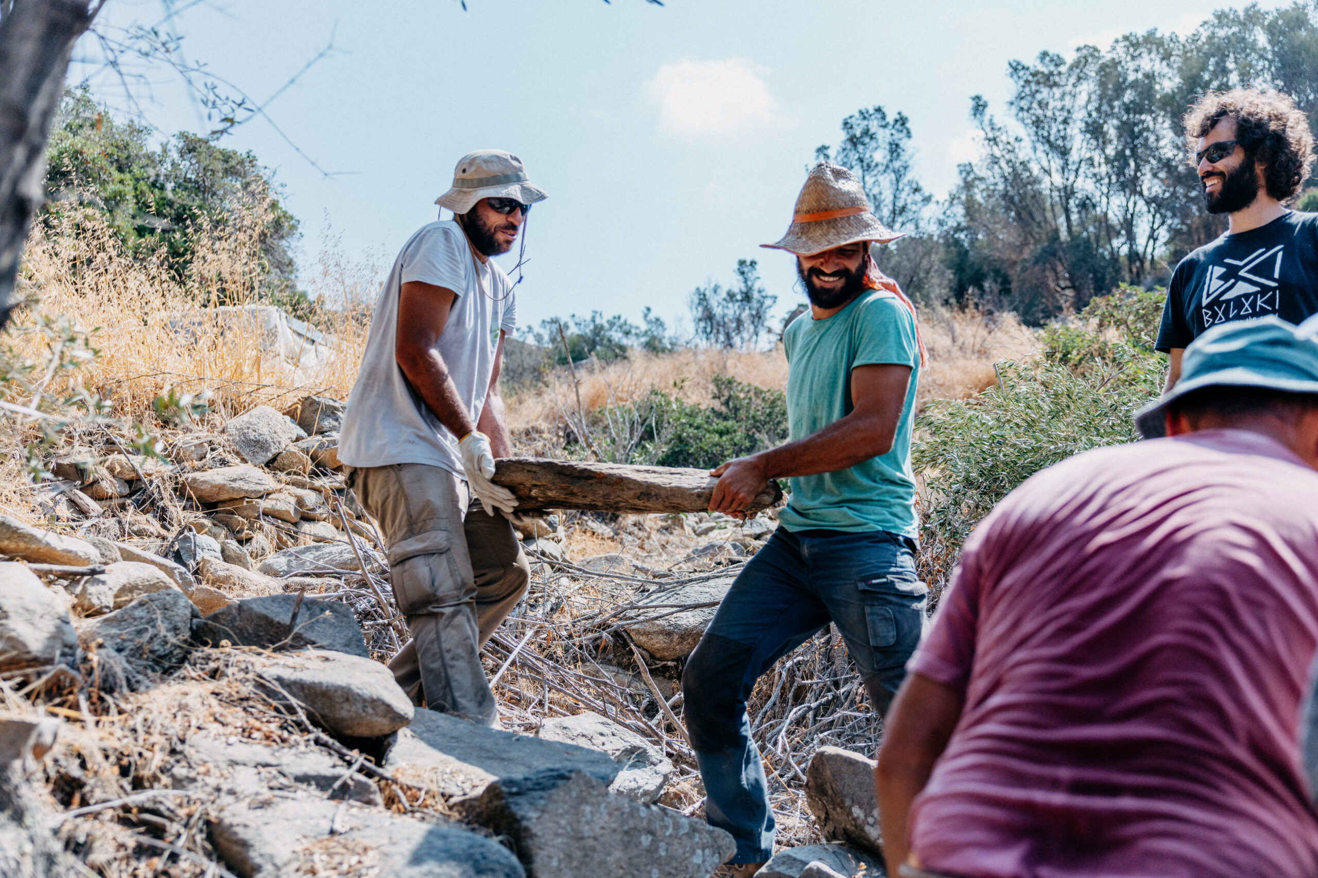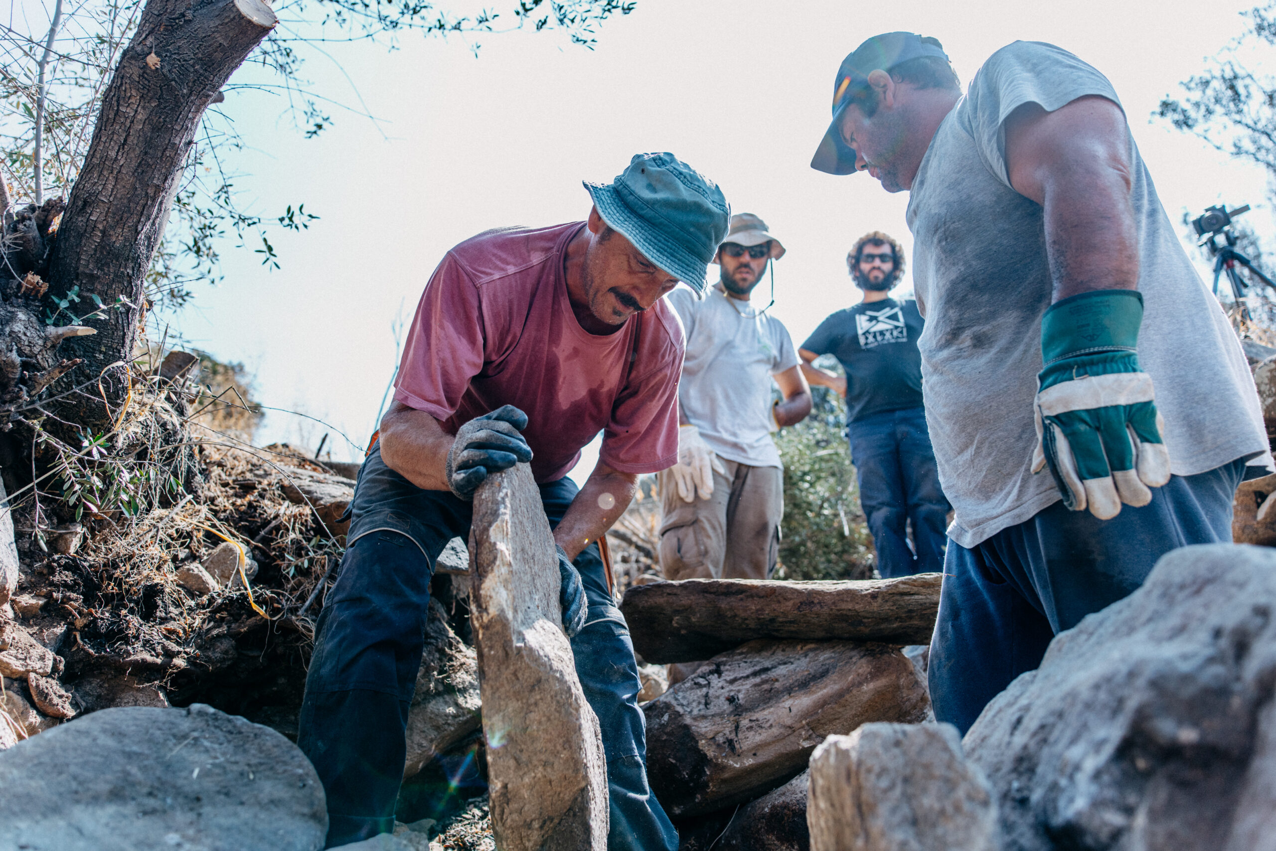 A key area of work that increasingly engages our team concerns the connection between traditional building practices and the responsible use of natural resources, particularly water management. In response to the urgent issue of water scarcity, Boulouki has implemented three projects on Aegean islands, focusing on the construction of dry-stone check dams along riverbeds. These structures help regulate water flow, recharge aquifers, prevent flooding and erosion, and enhance biodiversity. As a consistent practice of our organization, all projects are carried out through training and participatory programs, accompanied by outreach and awareness activities for local communities.