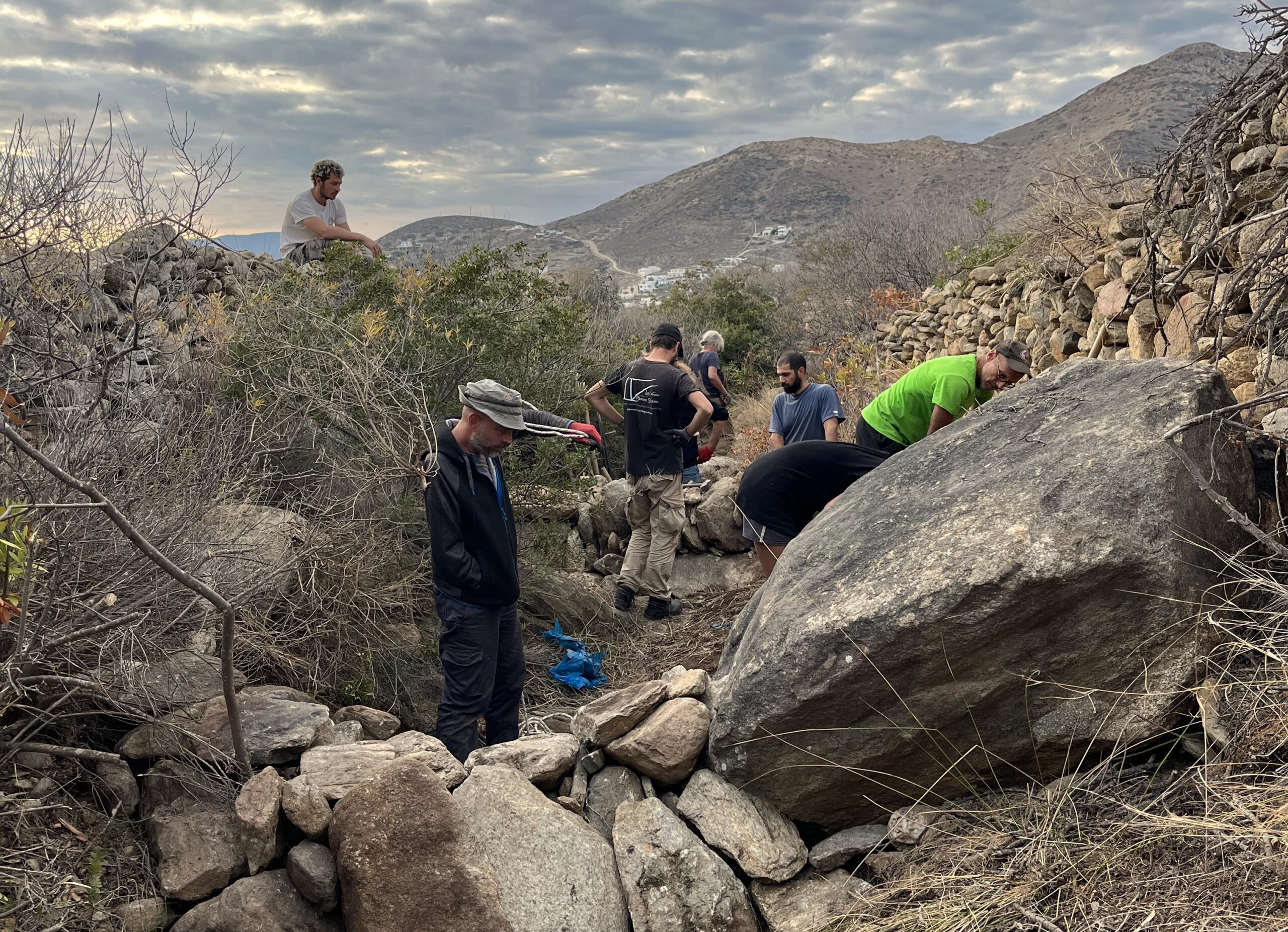 15 participants from Greece and abroad attended a five-day hands-on workshop, which included hands-on engagement in the fieldwork of building dry-stone micro-dams. The workshop also featured a series of parallel educational activities, guided tours, and open events across the island of Ios.